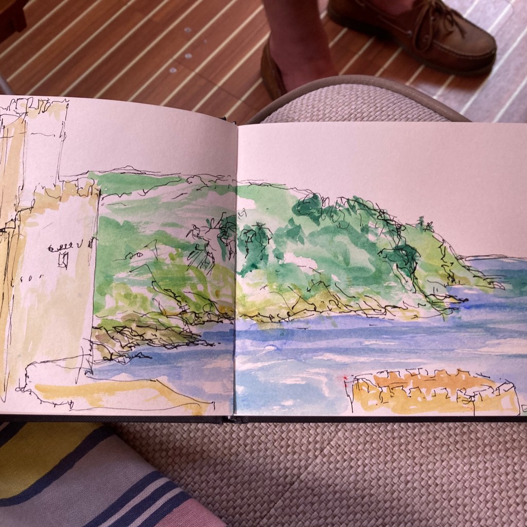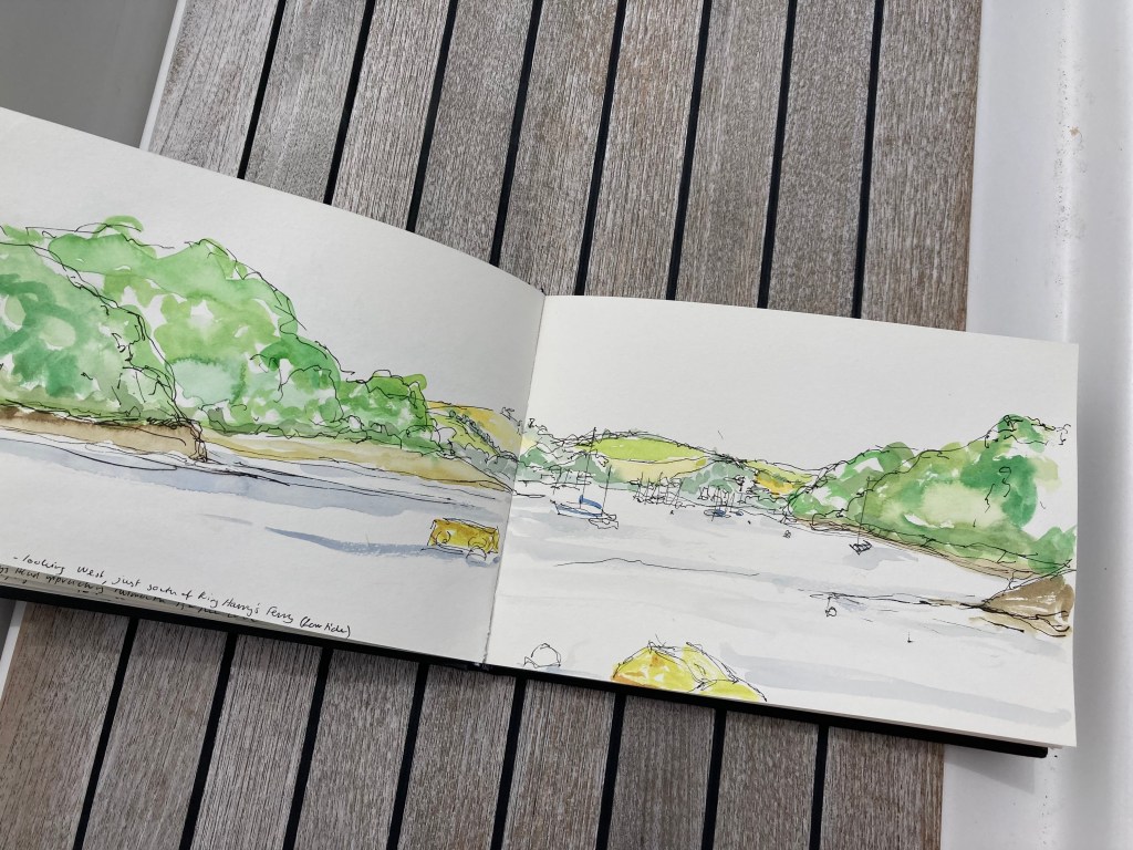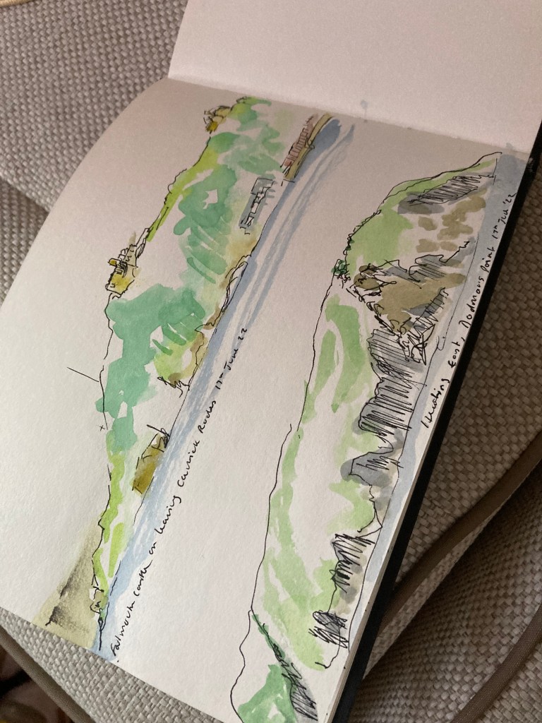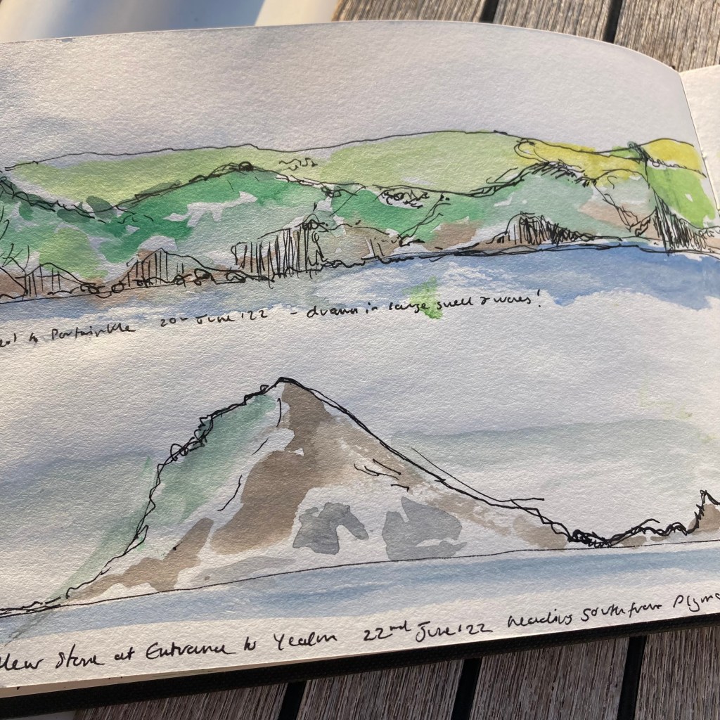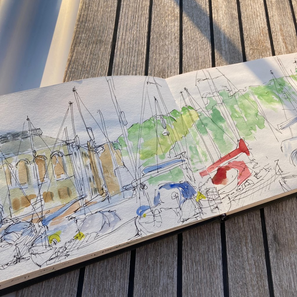 I was wonderfully fortunate to have spent the last month sailing along the South Coast of England. To capture the trip I chose to sketch moments rather than just photograph. The memory is so much stronger when drawn; specific details recorded; sensory encounters; colour and light. Water colour and pen. Here are a few of the pages…